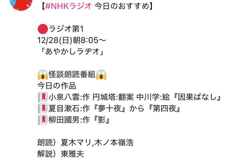 今朝はこの番組の小川未明「森の妖姫」で面白かったです。