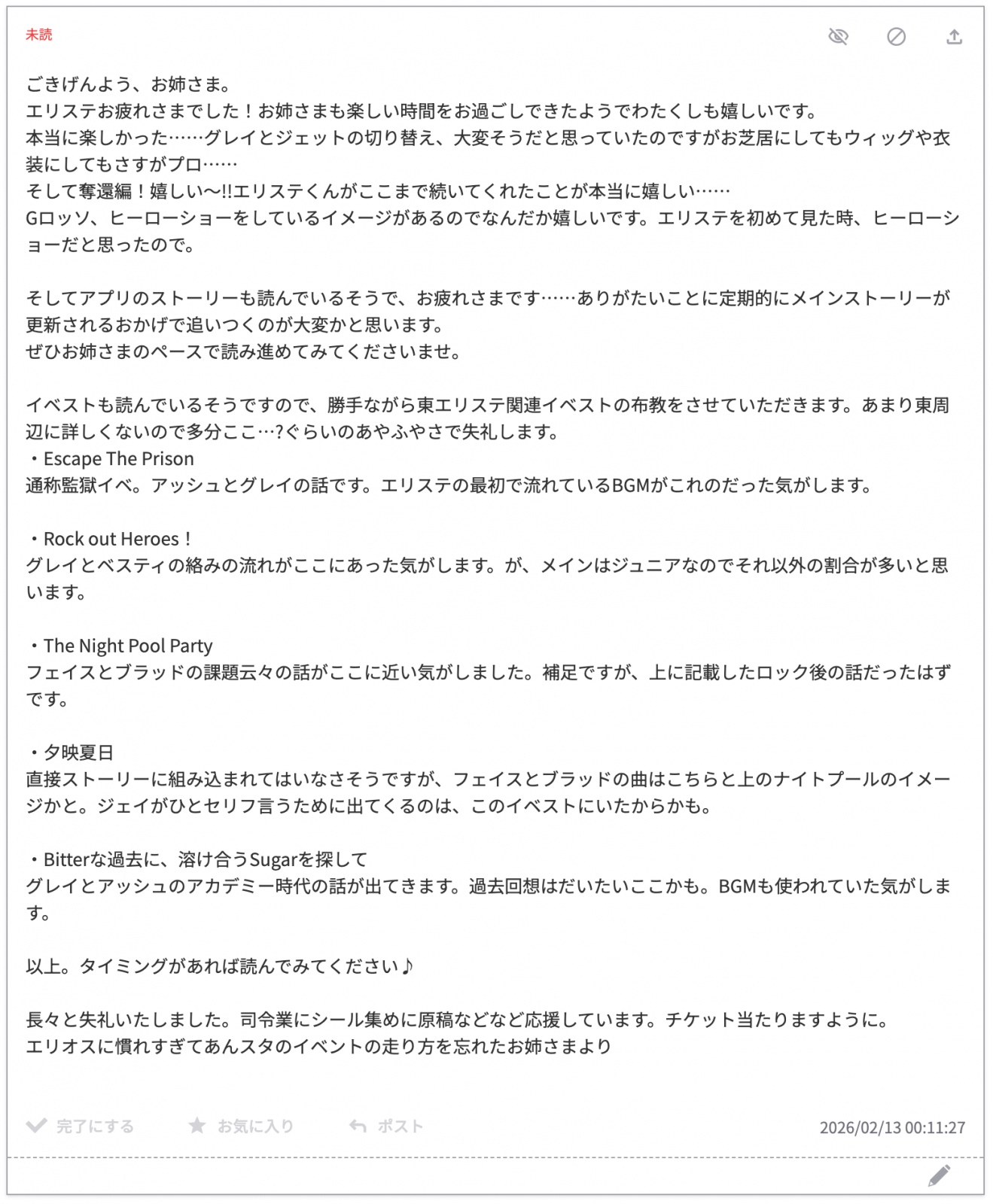 エリステくん、構成が好きなのでとても楽しませていただいております。